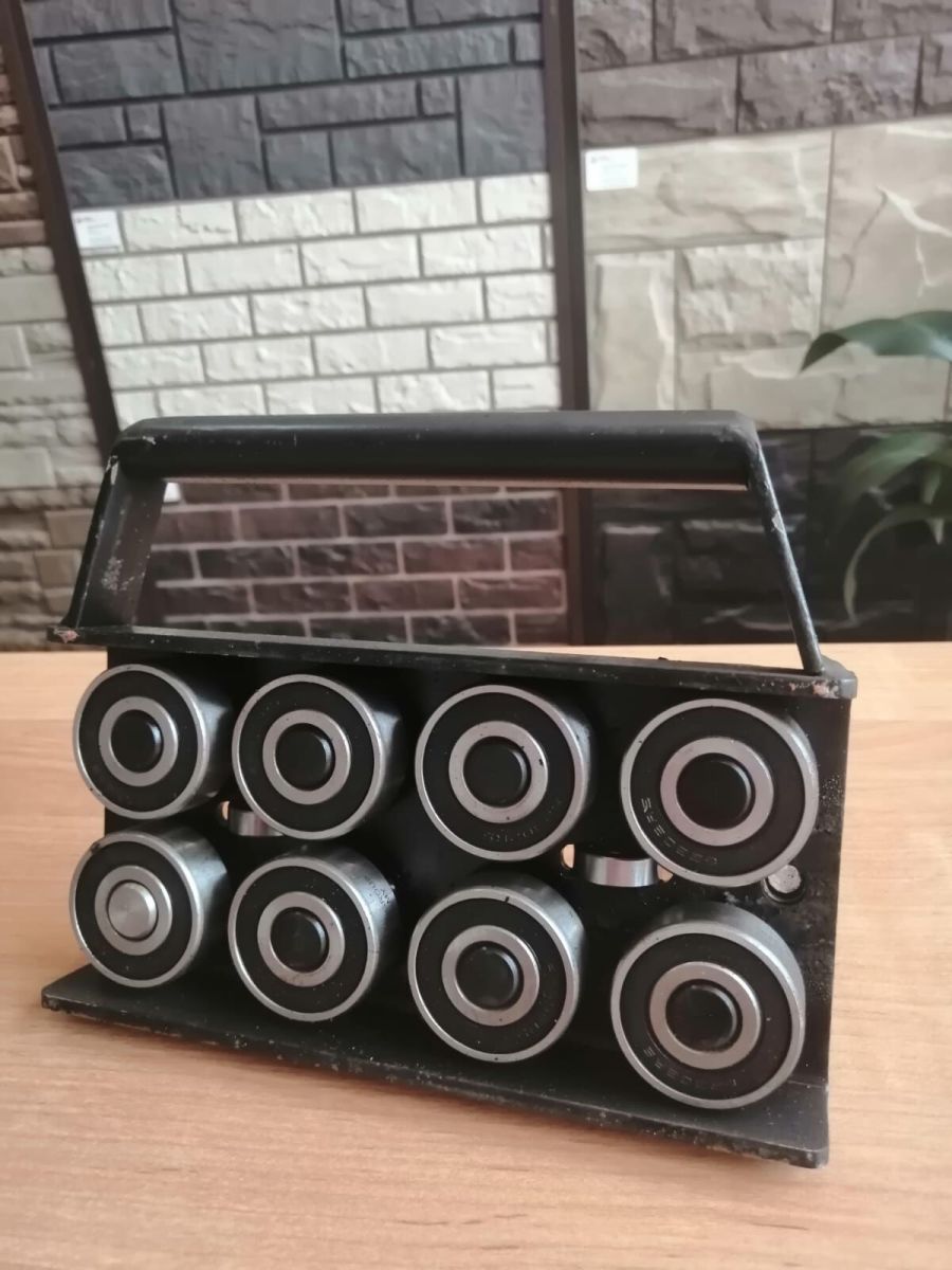 В корпусе расположены два торцевых (поперечных) ролика (подшипника), которые позволяют не царапаться заготовке окрашенного металла с торца (в отличии от фальцезакаток, в которых предусмотрены пластины из пластмассы – вылетающих от стенки корпуса или со временем перерезаемые насквозь).