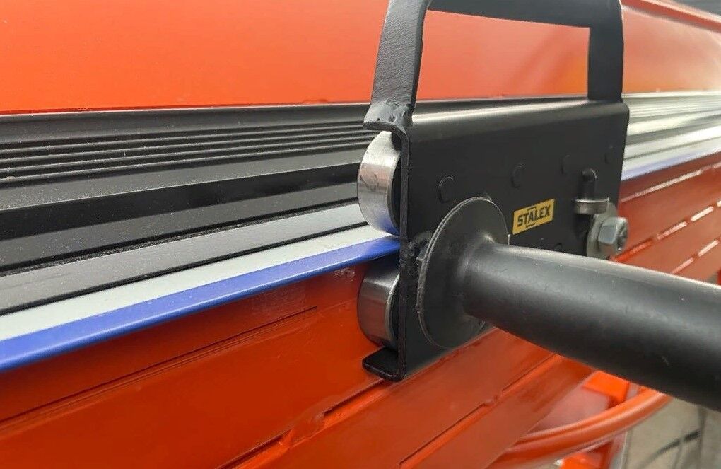 Фальцезакаточная машинка Stalex применяется для догиба кромки на 180°, в изделиях из тонколистового металла различного назначения. Инструмент представляет собой 4 пары роликов (подшипников), расположенных каскадом друг за другом. Каждая последующая пара увеличивает угол догиба. Последний верхний ролик имеет регулировку по высоте, что позволяет машинке работать с разной толщиной металла и регулировать угол до 180°. Размер роликов позволяет уверенно работать с толщиной листа 0,7мм (сталь).