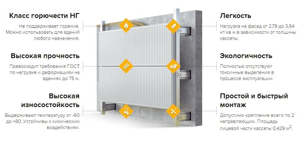 Характеристики кассет фасадных :