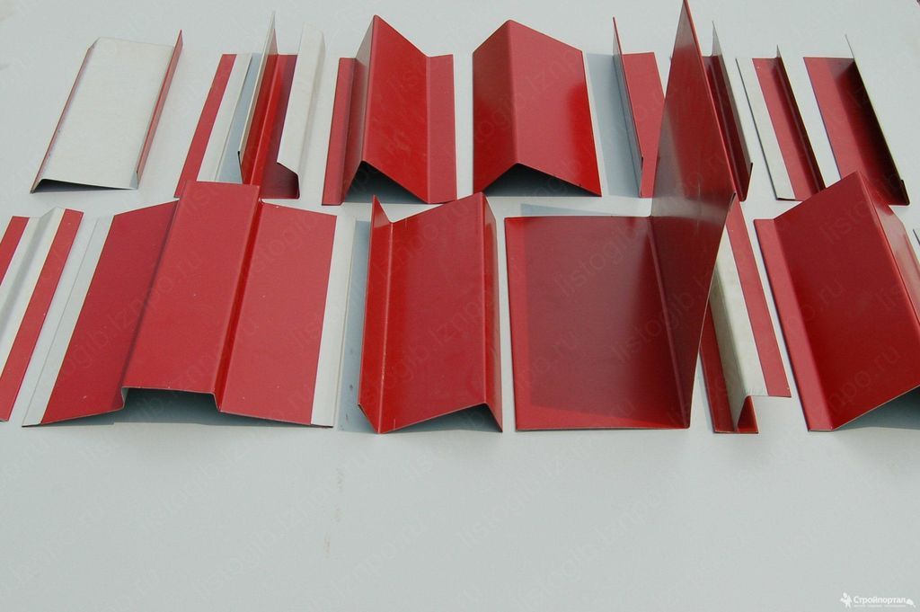 Виды изделий для сэндвич-панелей: коньки, планки стыковочные, торцевые, карнизные, примыкания, отливы для сэндвич-панелей, откосы, накладки для сэндвич-панелей.