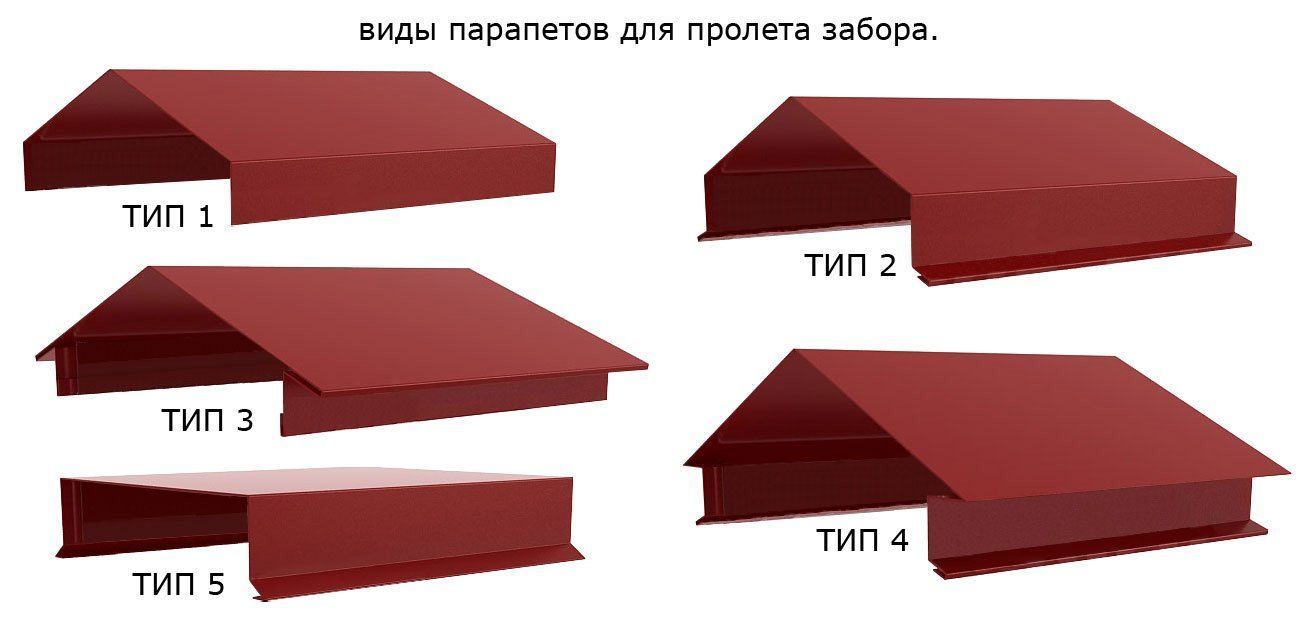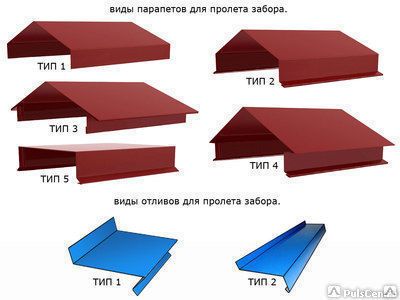 - Колпаки на забор, парапеты на кровлю и забор, зонтики для труб