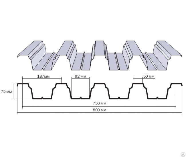 Профлист Н75 - применяется в качестве кровельных перекрытий, при армировании перекрытий, используется для опалубки, для жесткости металлических сооружений, в качестве настила, как конструкции щитовых ограждений, при возведении стен постройки и металлоконструкций.