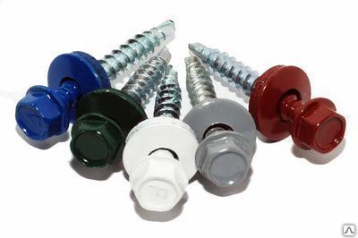 Саморезы с цветным полимерным покрытием шляпки. Цветное покрытие устойчиво к ультрафиолетовому излучению. Обычно цвет самореза выбирают в соответствии в цветом самой кровли, что делает их незаметными на кровле.