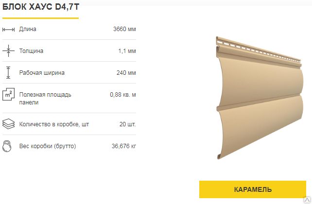 Читать все статьиСайдинг DOCKE пластик Карамель 3.6м ВLOCKHAUS ПВХ S=0,87м2 Бревно