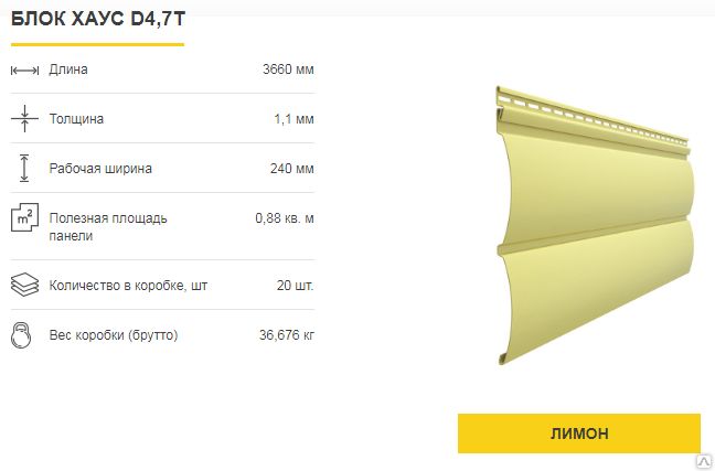 Читать все статьиСайдинг DOCKE пластик Лимон 3.6м ВLOCKHAUS ПВХ S=0,87м2 Бревно