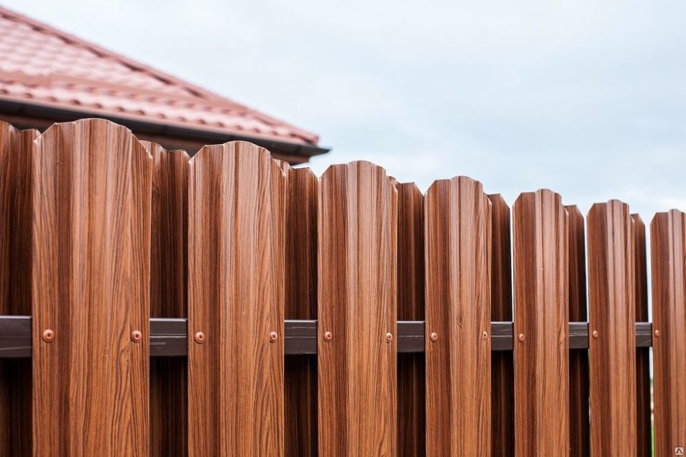 МП Trapeze® реалистично имитирует деревянные планки. Забор из него смотрится легко и красиво. Особенно эффектно выглядит с покрытием Ecosteel® под дерево.