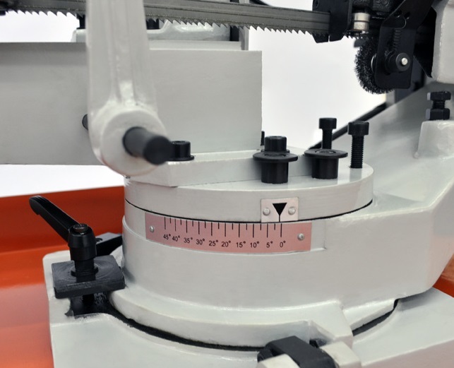 ![]() | Поворотная рама пилы на угол от 0° до +45° |