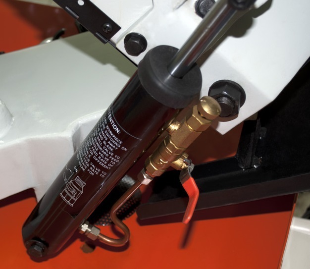 Пила опускается под собственным весом, станок оборудован дросселируемым гидравлическим цилиндрами подач, который позволяет автоматически подстраивать скорость опускания пильной рамы в зависимости от профиля заготовки, что обеспечивает оптимальные режимы распила. Станкам не требуется подключение к источнику сжатого воздуха.