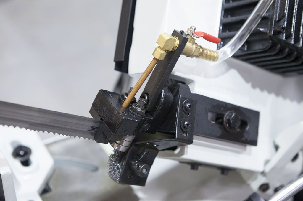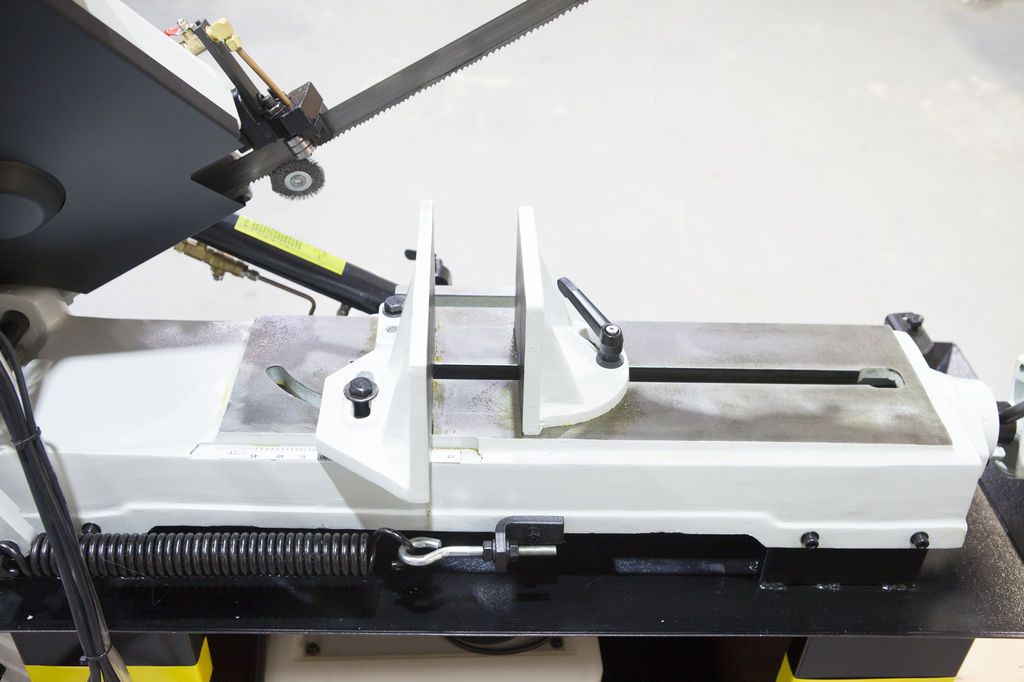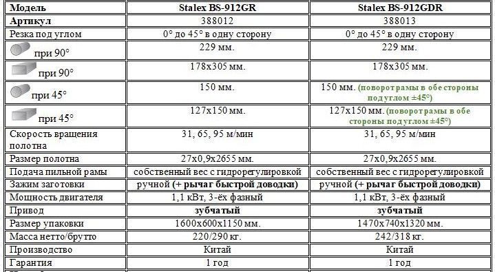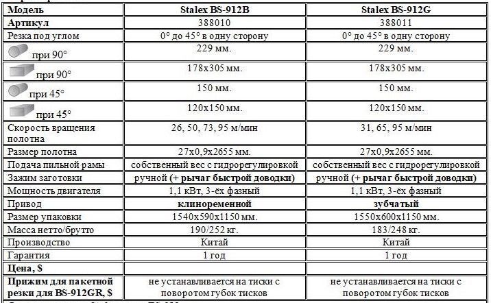 Станки Stalex BS-912 имеют высоту полотна 27мм, в зависимости от комплектации поворот губок тисков или возможность поворота рамы пилы, а также привод клиноременной или зубчатый. Система СОЖ в стандартной комплектации.
