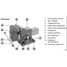 Закрытый ходовой винт тисков защищен от попадания металлической стружки и опилок. Тиски имеют возможность поворота на 360° относительно своего основания.