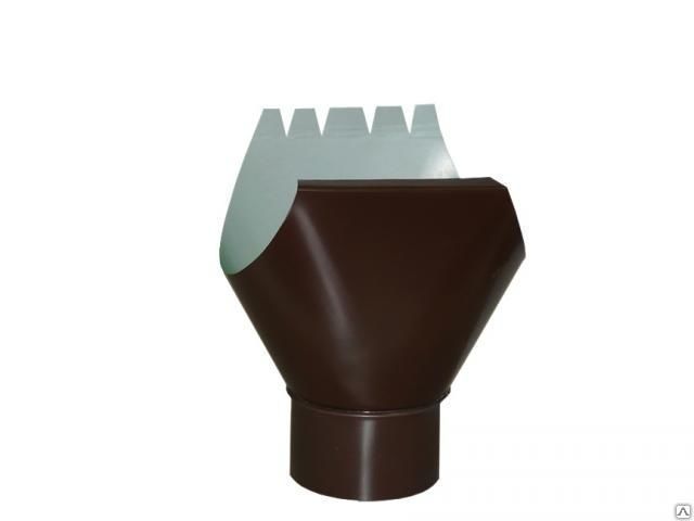Обеспечивает слив воды из желобов в водосточную трубу. Конфигурация способствует равномерному, без переливов, стоку воды даже в моменты наибольшей интенсивности атмосферных осадков.