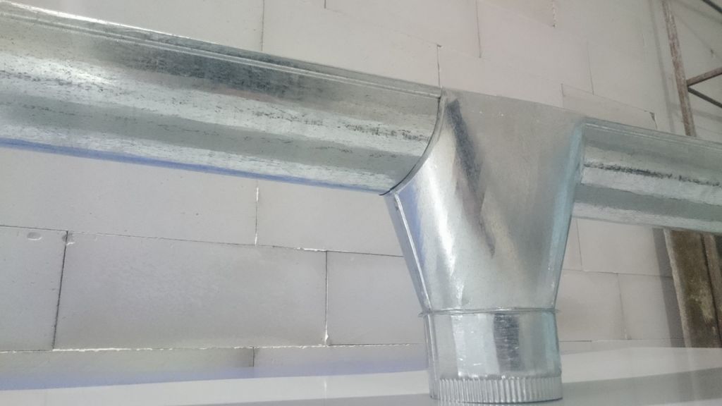 - Если крыша стоит на большом здании и площадь превышает 100 м², необходимо использовать 150 мм и диаметр в 100 мм. Также есть вариант использовать иное сочетание – желоб в 190 мм, труба – 120 мм.